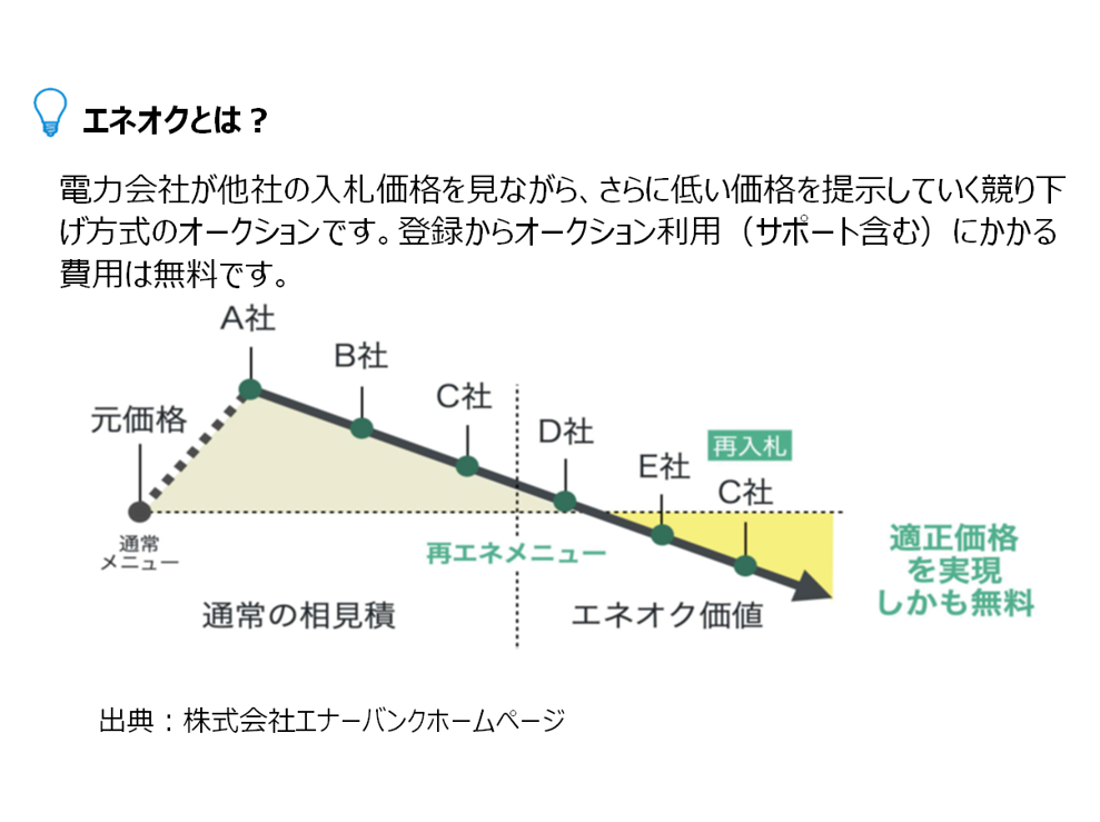 豊島区は環境省が推奨する、電力のリバースオークションサービス「エネオク」を実施する(株)エナーバンクと協定を締結し、